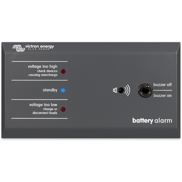 Der Battery Alarm GX ist ein kleines und kostengünstiges Paneel, mit dem Sie Ihre Batteriebank überwachen können. Es verfügt sowohl über akustische als auch visuelle Alarme. Außerdem hat es einen potenzialfreien Kontakt mit Schließer- und Ruhekontakten. Die Alarm-Schwellwerte und Hysterese lassen sich über DIP-Schalter programmieren. Weitere Informationen hierzu sind auch im Handbuch erhältlich.