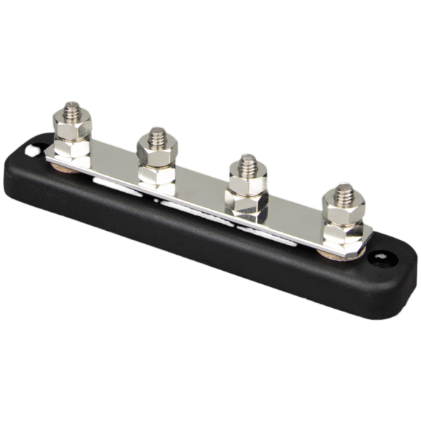 Wir bieten eine Reihe von Busbars mit unterschiedlichen Nennströmen und eine unterschiedliche Anzahl von Anschlussklemmen an. Jede Sammelschiene ist mit einer abnehmbaren Schutzabdeckung ausgestattet. Zudem ist ein Batterie-Hauptschalter für bis zu 275A im Programm.