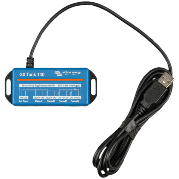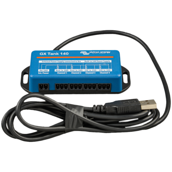 Der GX Tank 140 ist sowohl mit Stromgebern (4 bis 20 mA) als auch mit Spannungsgebern (0 bis 10 V) kompatibel. Das GX-Gerät wird über USB verbunden, wodurch der GX Tank auch mit Strom versorgt wird. Es sind keine zusätzlichen Stromkabel erforderlich.