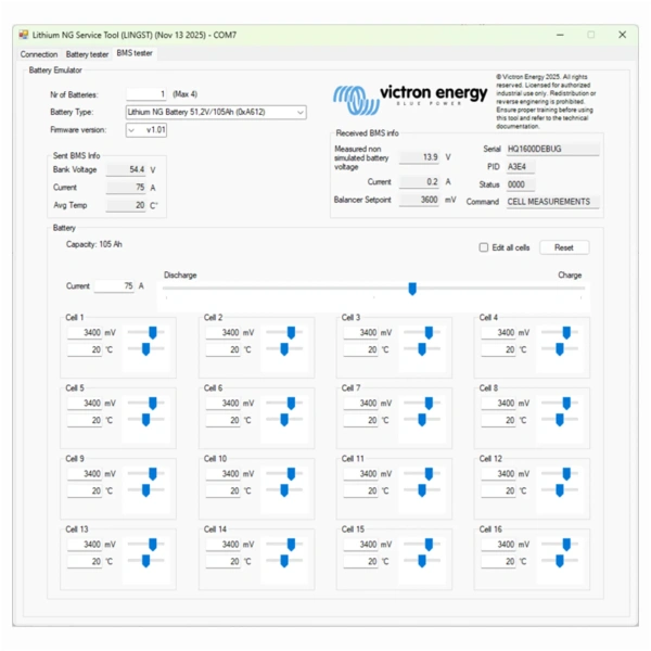 • Mit BMS NG-Einheiten interagieren, indem Sie eine NG-Batterie simulieren, was für die Inbetriebnahme und Fehlerbehebung nützlich ist, selbst wenn keine echte NG-Batterie verfügbar ist