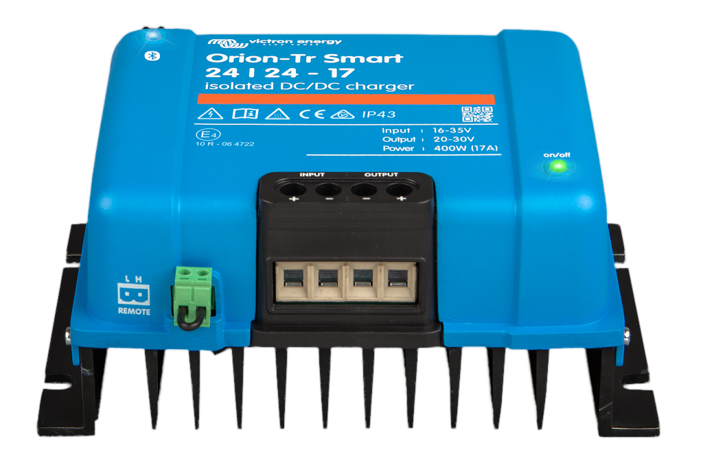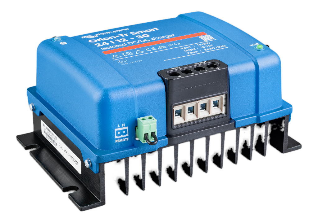 Das Orion-Tr Smart Ladegerät kann in 12V- oder 24V-Systemen verwendet werden und ist sowohl für Blei- als auch für Lithium-Batterien geeignet. Es sind Modelle bis zu 400 W erhältlich und unbegrenzt viele Geräte können parallel geschaltet werden, um die Ausgangsleistung zu erhöhen.