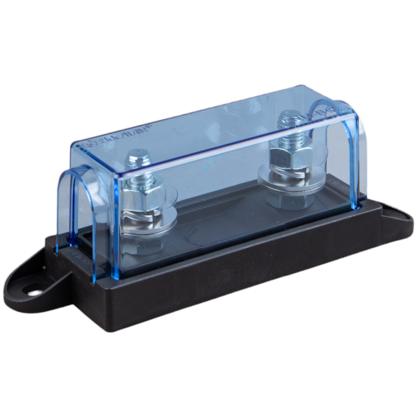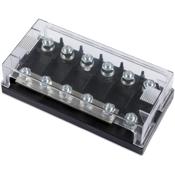 - Modulare Einzel-Sicherungshalter für MEGA-Sicherungen. Mit optionalen Sammelschienen, um mehrere Sicherungen effizient miteinander zu verbinden.