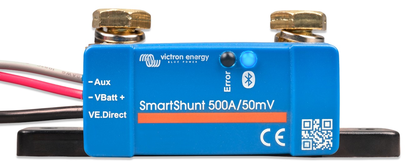 Der SmartShunt ist ein all-in-one Batteriewächter, nur ohne Display. Zur Anzeige wird ein Smartphone, Computer oder via VE.Direct ein GX-Gerät genutzt.