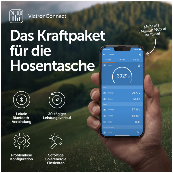 Die drahtlose Lösung zum Set-up, Überwachen und Aktualisieren des SmartSolar Lade-Regler.