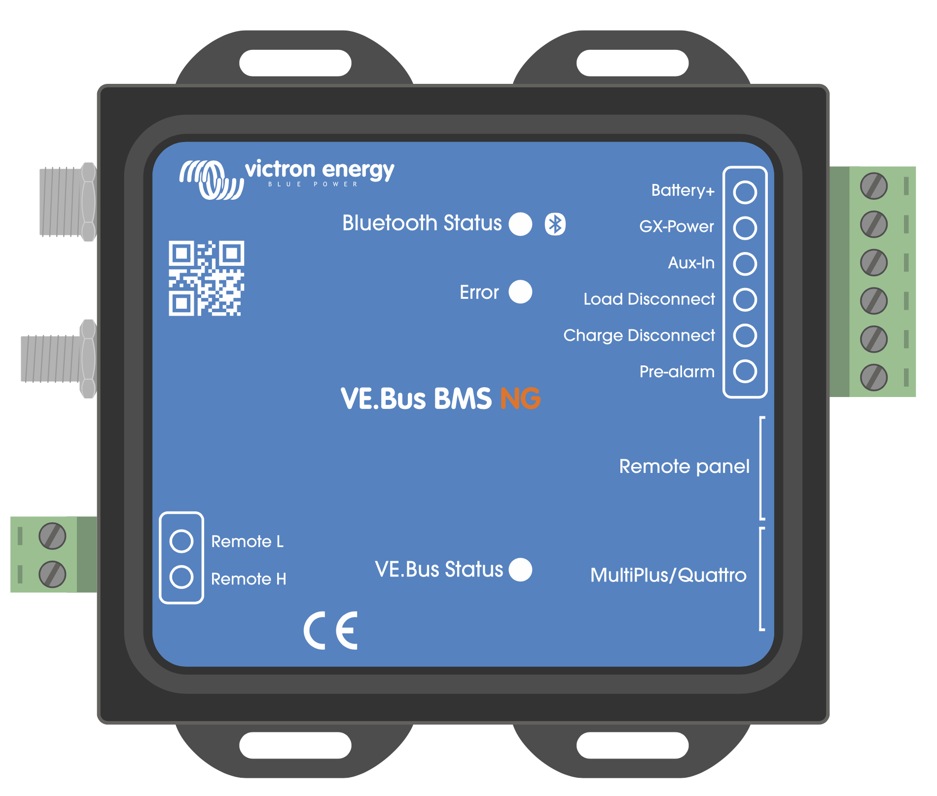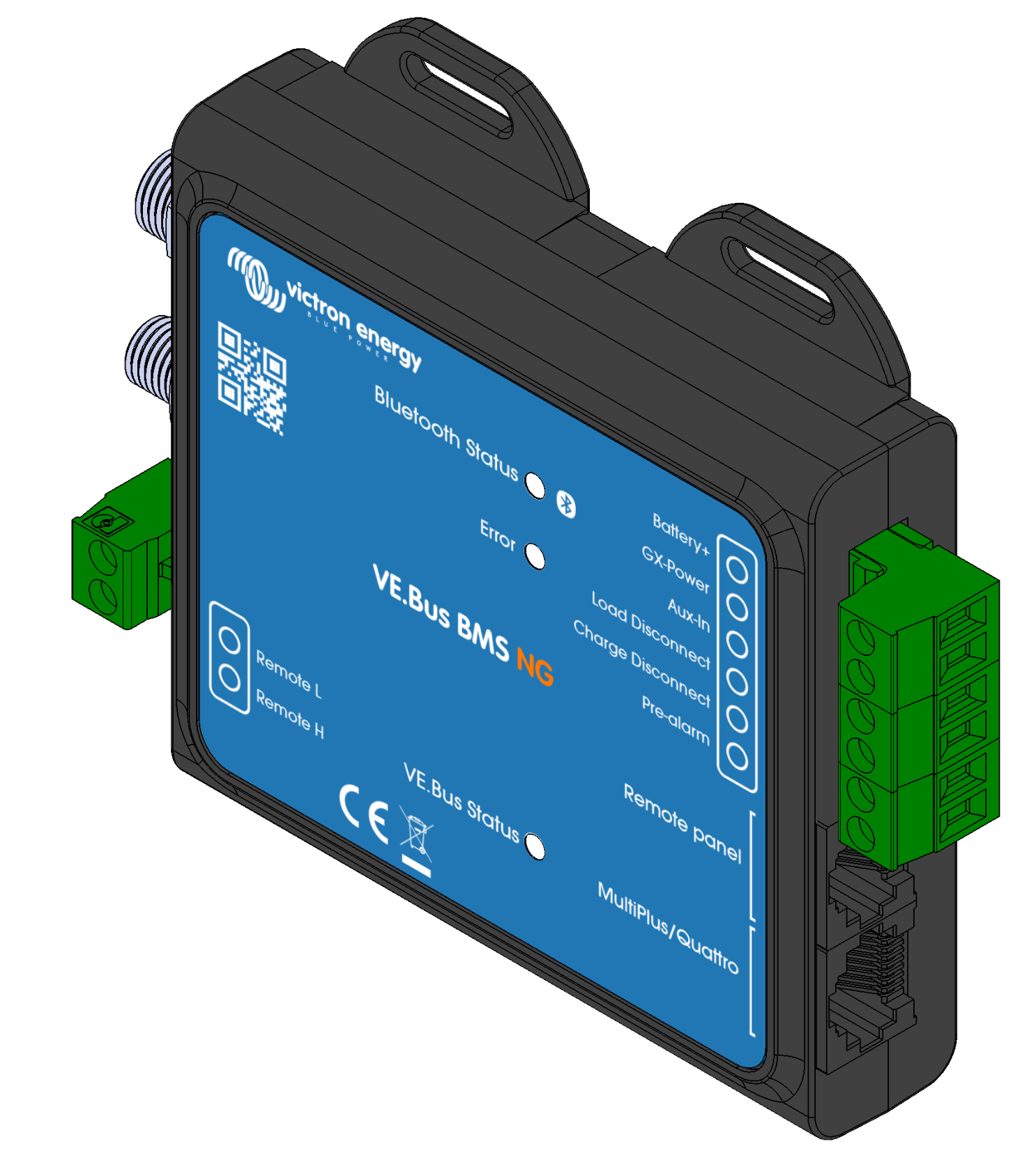 Das VE.Bus BMS NG ist ein Batteriemanagementsystem (BMS), das speziell für Victron Energy Lithium NG Batterien entwickelt wurde (nicht zu verwechseln mit Lithium Smart Batterien ohne NG Bezeichnung). Dabei handelt es sich um LiFePO₄-Batterien, die in 12,8 V, 25,6 V und 51,2 V und in verschiedenen Kapazitäten erhältlich sind.