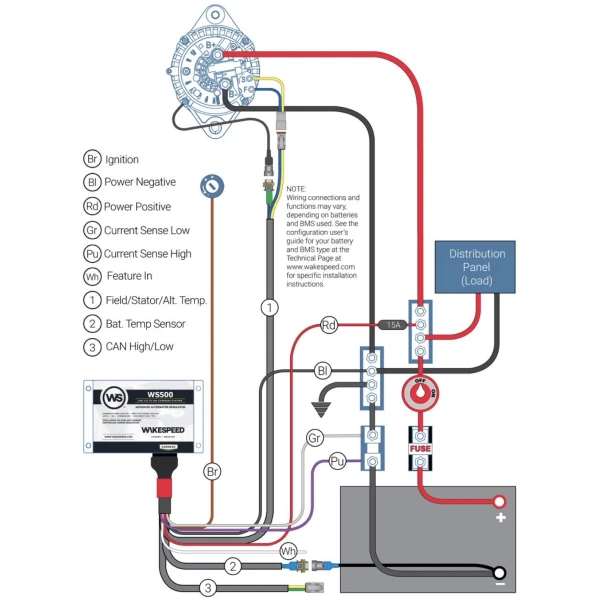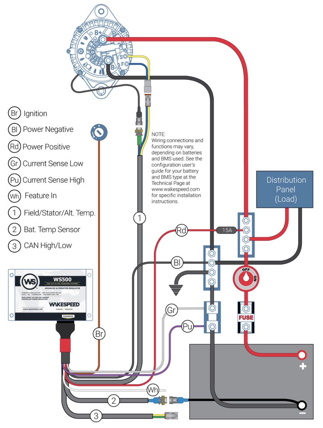 Der WS500 kann mit Lichtmaschinen unterschiedlicher Polarität verwendet werden, indem der entsprechende N-Typ- oder P-Typ-Regler-Kabelbaum ausgewählt wird. Die Kabelbäume sind mit hochwertigen Ampseal-Steckverbindern ausgestattet und verfügen über alle Anschlüsse für den Grundbetrieb sowie über spezielle Anschlussdrähte für die Spannungs- und Strommessung.
